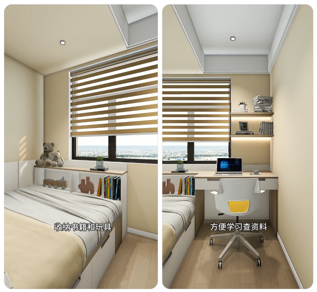 床尾别空着!做一组薄柜,放书籍、玩具、学习资料,不用再买书架占地方;
