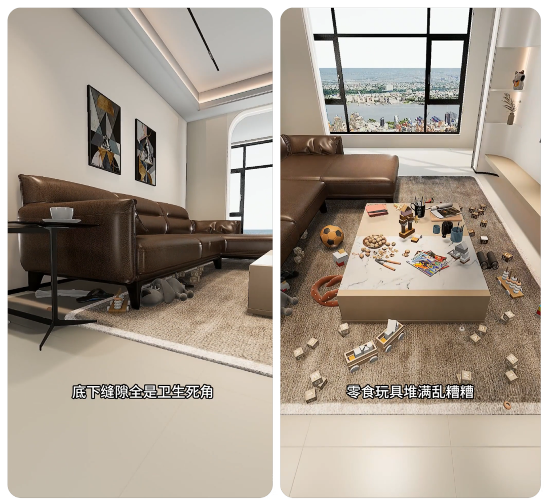 提到客厅,很多人还在摆笨重的成品沙发 —— 底下藏灰难清理,零食玩具堆得乱糟糟,收纳空间根本不够用!