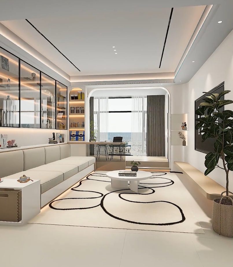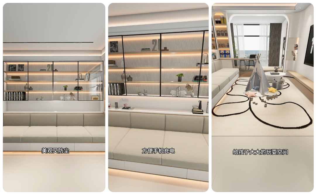 3. 细节提升体验:地台边缘做圆弧处理,防止孩子磕碰;坐垫、抱枕多备 2-3 套可拆洗套子,方便定期更换;插座选带 USB 接口的,满足多设备充电需求。这样装出来的客厅,没有卫生死角,收纳空间翻倍,还能灵活切换休闲、办公、亲子模式,住再久也不会腻!