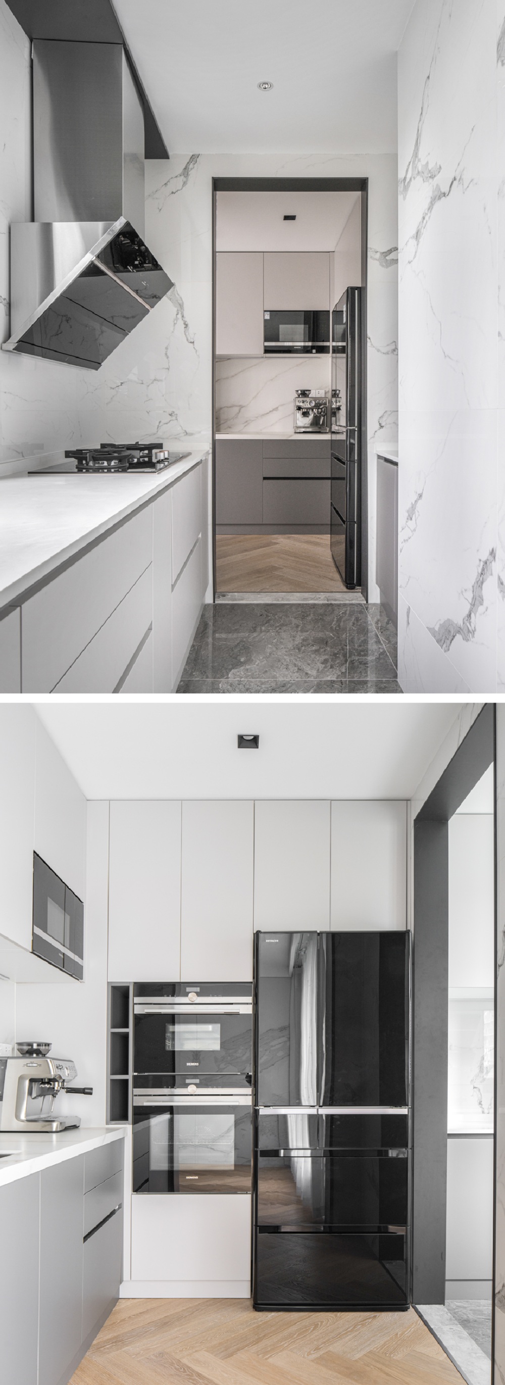 精细化餐厨布局:增设独立西厨区,功能分明,生活更高效。嵌入式定制柜将家电“隐形”,空间加倍利落。清爽的白灰配色,在提升高级感的同时,丝毫不显压抑,让下厨与互动都成为一种享受。